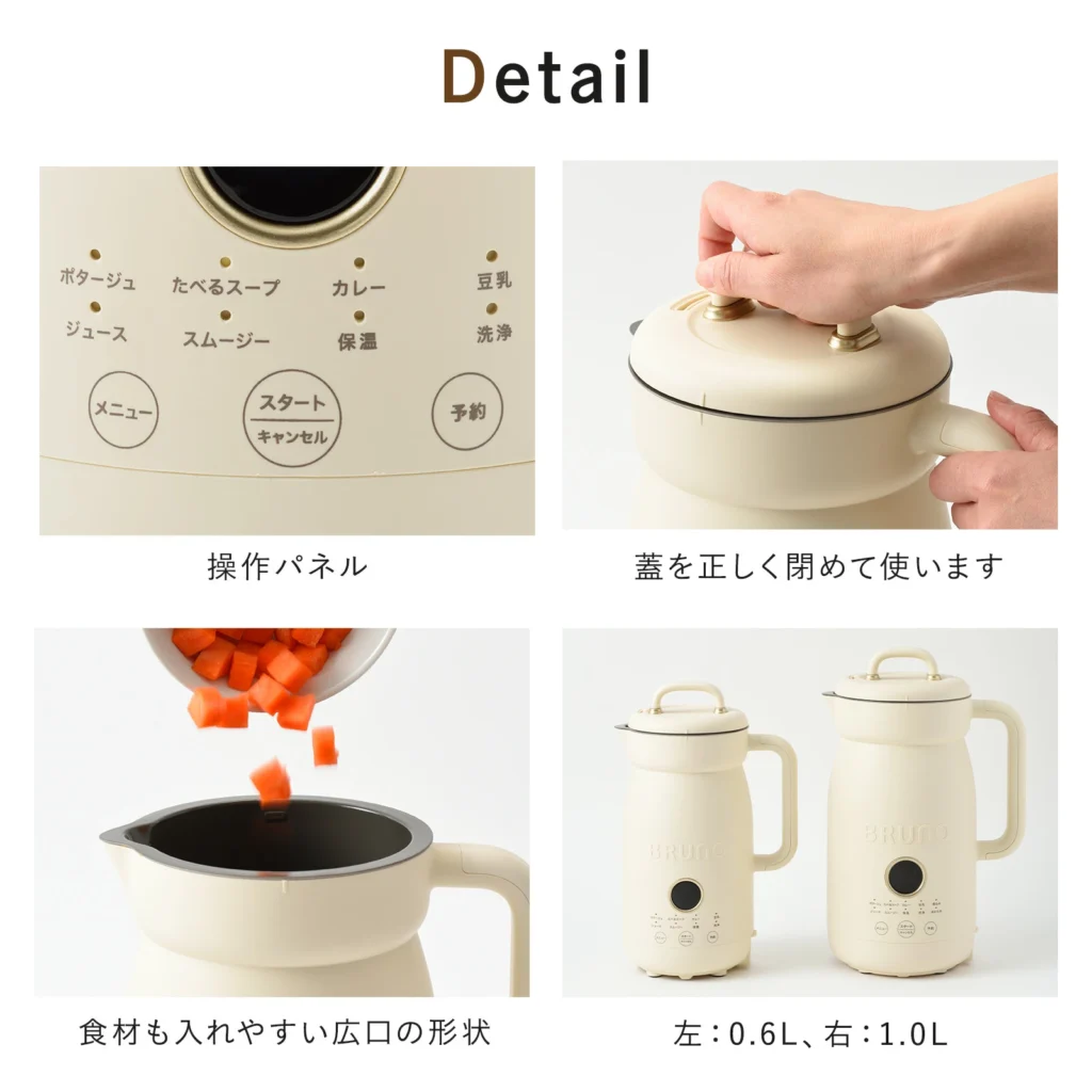 • 10種類のプリセットメニューで、ポタージュからカレー・豆乳まで幅広い