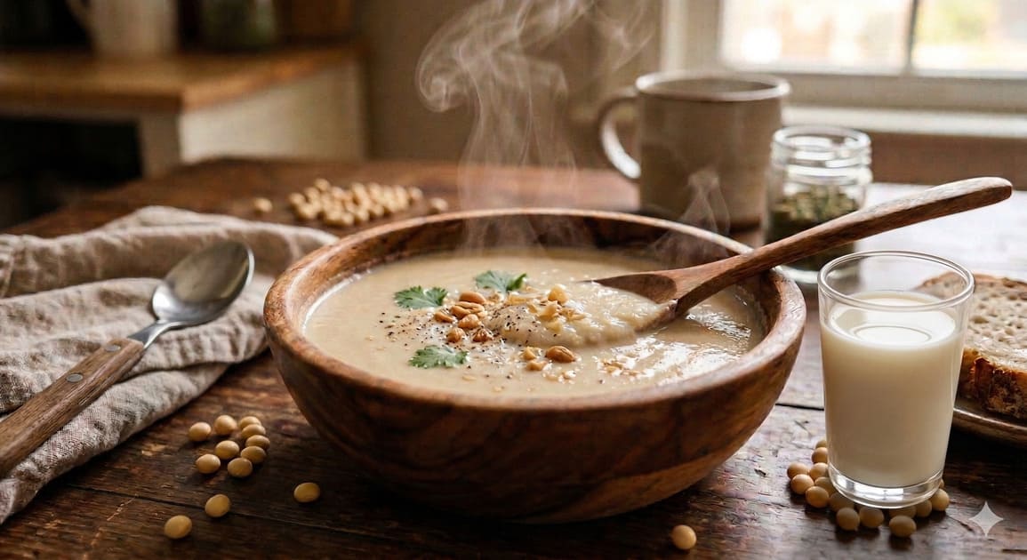 朝、乾燥大豆を水に浸けて。帰宅後にポットへ放り込んだら、夜には自家製豆乳ポタージュ。