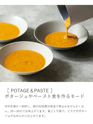 - 材料を入れてお任せするだけで、美味しいポタージュが仕上がる